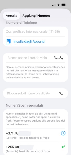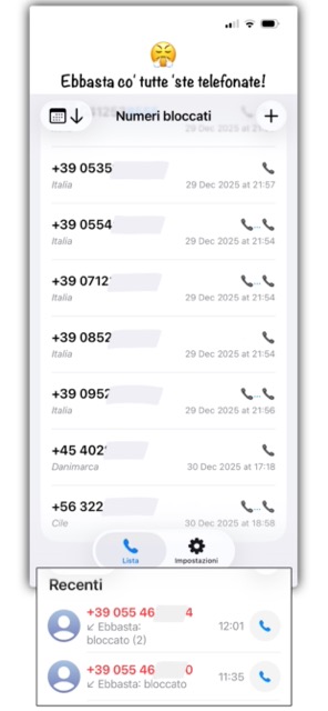 Lista numeri da bloccare